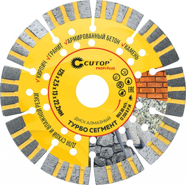 Диск отрезной алмазный "Турбо Сегмент", 125х2,5х13х22,2мм CUTOP 68-990