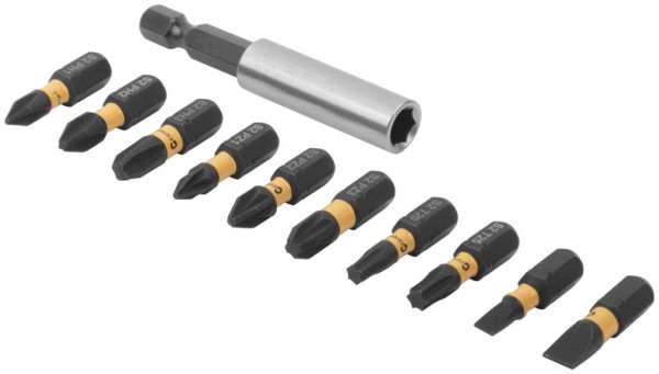 Торсионных бит 25 мм 10 шт: PH1, PH2, PH3, PZ1, PZ2, PZ3, T20, Т25, SL4, SL6.