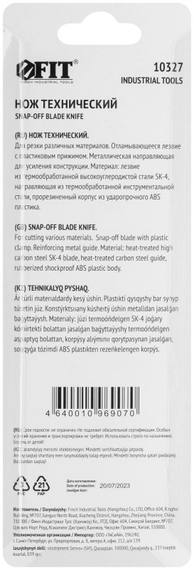 Нож технический 25 мм усиленный прорезиненный FIT 10327