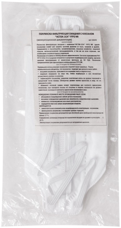 Класс защиты FFP3, степень защиты до 50 ПДК.