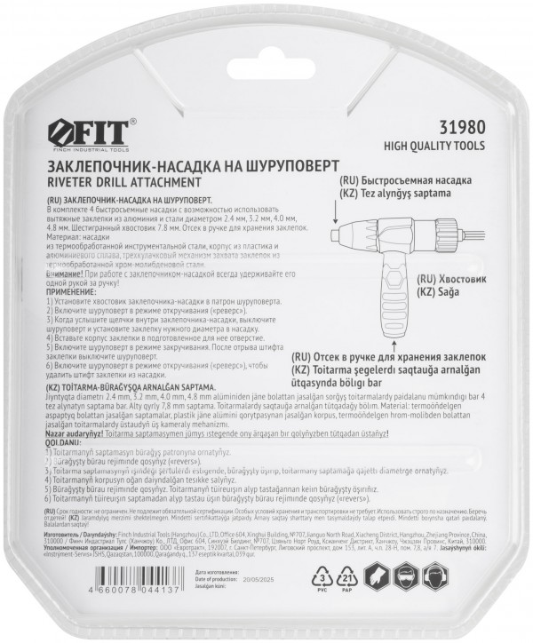 Заклепочник-насадка на шуруповерт 2,4-4,8 мм FIT 31980