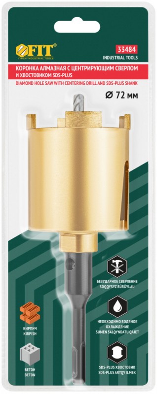 Коронка кольцевая по бетону алмазная безударная в сборе 72мм FIT 33484