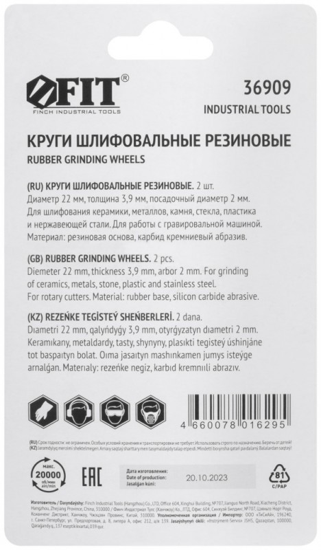 Круги резиновые шлифовальные, набор 2шт. FIT 36909