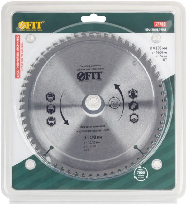 Диск пильный для циркулярных пил по алюминию 190x30/20x60T FIT 37788