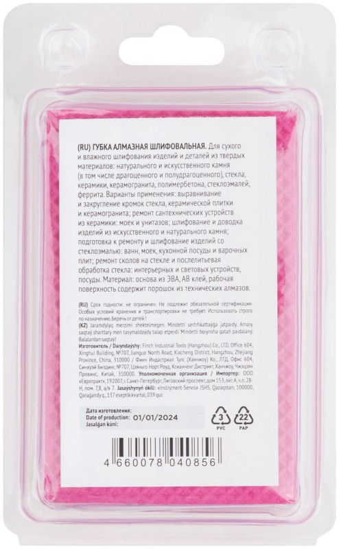Материал: основа из ЭВА, АВ клей, рабочая поверхность содержит порошок из технических алмазов.