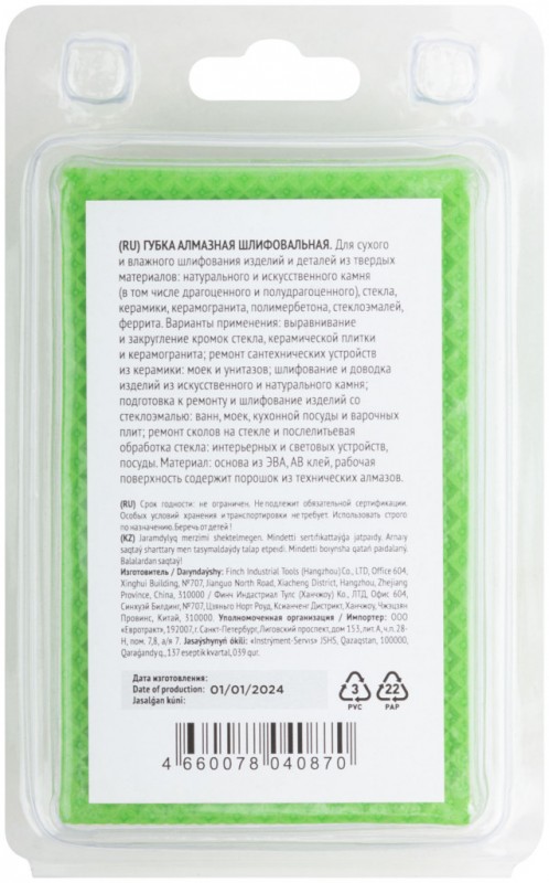 Материал: основа из ЭВА, АВ клей, рабочая поверхность содержит порошок из технических алмазов.