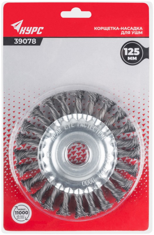 Корщетка-колесо, стальная витая проволока 125х22,2 мм КУРС 39078