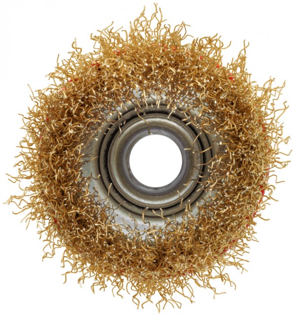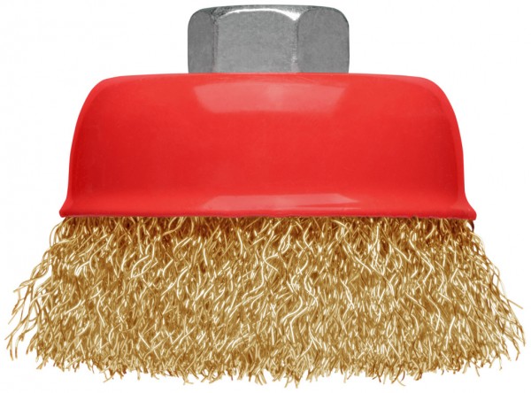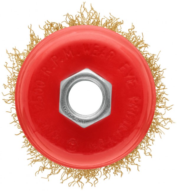 Корщетка-чашка, М14, стальная латунированная волнистая проволока 65 мм, блистер
