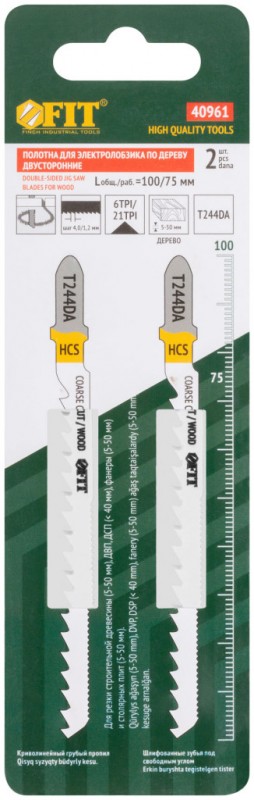 Полотна по дереву двусторонние, HCS, 100/75 мм (T244DA), 2шт FIT 40961