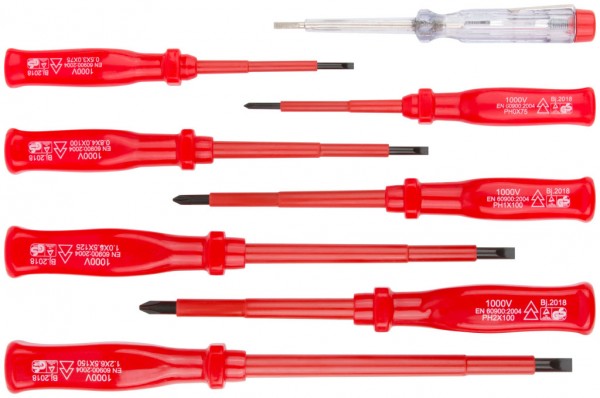 Набор изолированных отверток FIT IT для работ с крепежными элементами под напряжением до 1000 В.